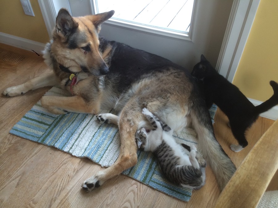 Dog with her new packmates