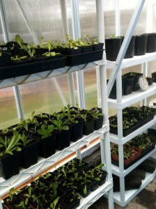 Seedlings transplanted from our grow lights are adjusting well to their new setting in the greenhouse.